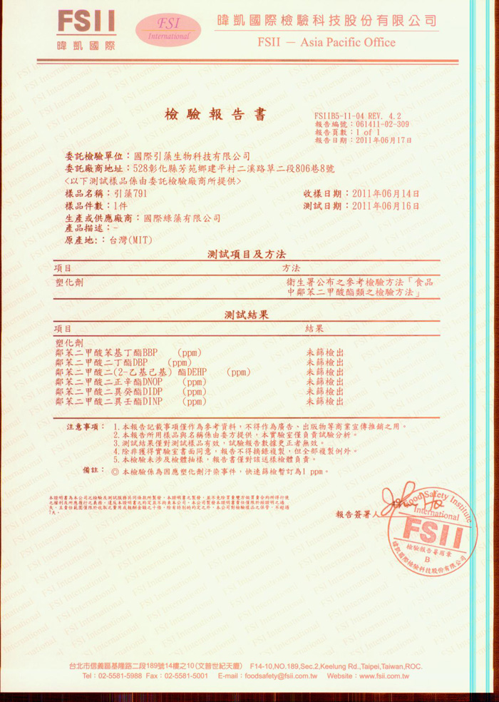 本公司引藻產品不含塑化劑-引藻791